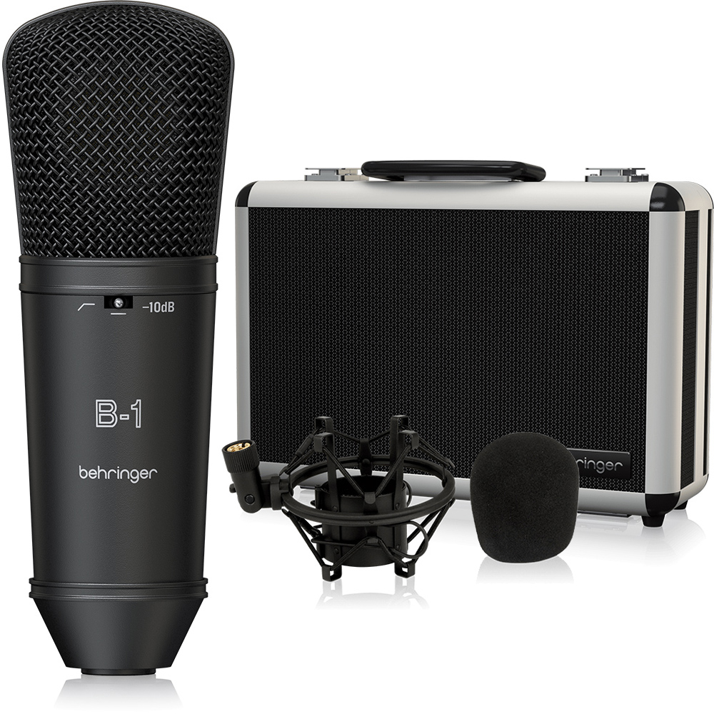 The Behringer B-1 large diaphragm condenser mic gives you a lot of microphone for not a lot of money. You get the crisp sound of a studio condenser mic at a price that’s great for home and project studios. The B-1 features a low-cut filter at 75Hz to give you control over the low-end response of your recordings. And thanks to the 10dB pad, you can use the B-1 on loud sound sources like drums and guitar amps. Behringer even gives you a shock-mount, windscreen, and aluminum storage case with the B-1. If you’re just starting to record, or just need an alternative studio mic at a low cost, you’ll appreciate the Behringer B-1 condenser mic.