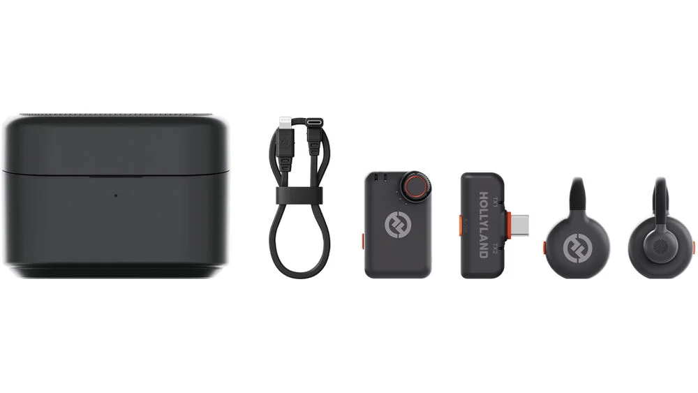 The system comes with multiple adapters including USB-C, Lightning, and 3.5mm TRS, making it universally compatible with iPhones, Android smartphones, DSLR cameras, laptops, and tablets. Its compact charging case keeps your gear ready with up to 40 hours of combined battery life, ideal for long shooting days.