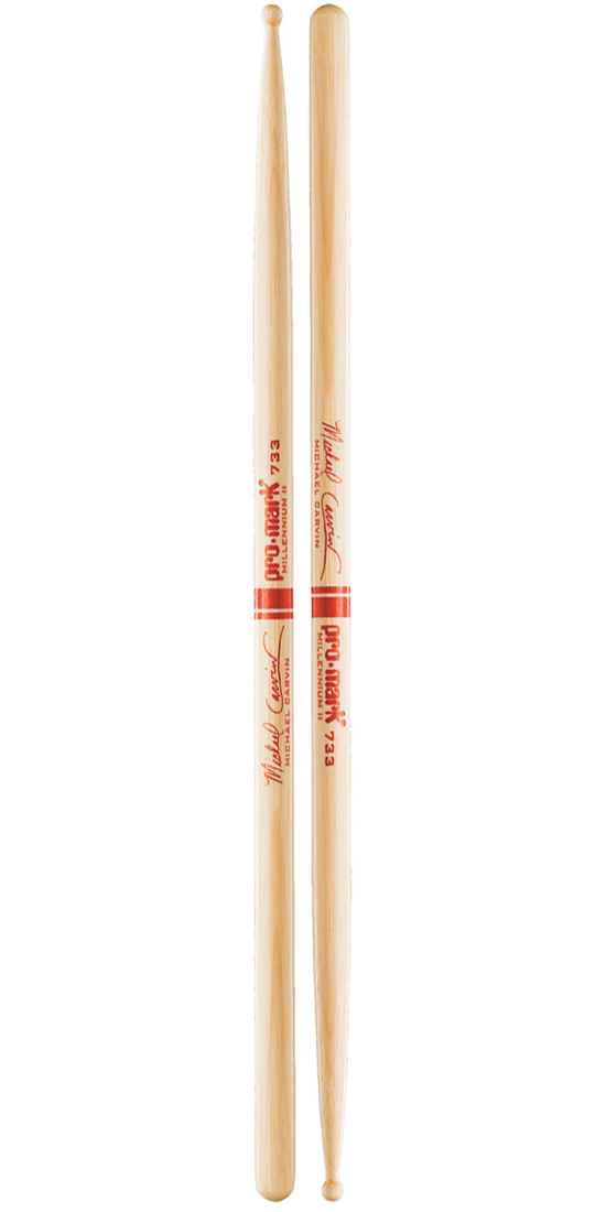 The 733 was designed by jazz great Michael Carvin. Its slightly smaller than a 5A in diameter, allowing for a comfortable feel in your hand. The ultra thin neck and small round bead allow for a responsive stick with great articulation on the drums and ride cymbal.